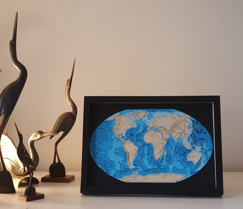 Svijet u 3D-u je premium, ručno izrađena 3D karta svijeta koja spaja znanstvenu kartografiju i suvremeni dizajn. Izrađena od 13 precizno izrezanih kartonskih slojeva, karta prikazuje globalni reljef, planine i dubine oceana u elegantnom A4 formatu.